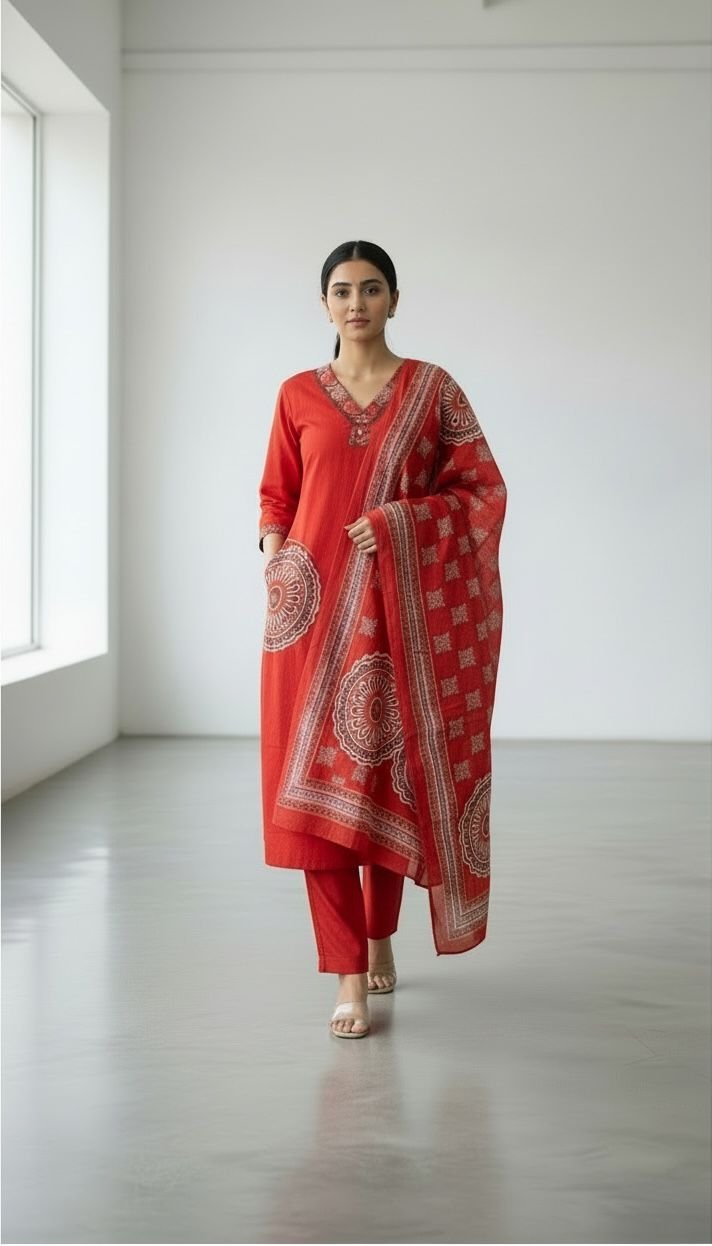 tep into timeless elegance with this beautiful red kurta set featuring traditional printed patterns and a matching dupatta. Designed with a comfortable fit and graceful silhouette, it is perfect for festive gatherings, family functions, and everyday ethnic wear.